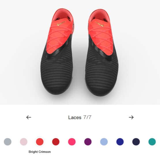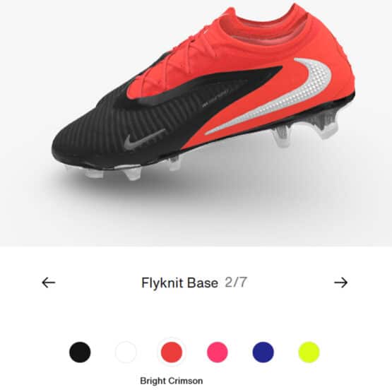 Personalise your own Phantom 6 Elite with Nike’s Phantom By You service. Take advantage of the spectrum of colours and design elements available to produce a Phantom pair bearing your imprint from heel to toe.The Flyknit base colour applies tonally to the tongue and quarter. Besides selecting a colour, you can also customise a text that will appear on the medial side. You choose separate colours for the main Swoosh and the small ones, but only the former has a selection of wearable gold or silver finish. Laces are also an option you can modify the colour. As far as the soleplate goes, you can choose among tonal, chrome or iridescent choices for both FG and AG.