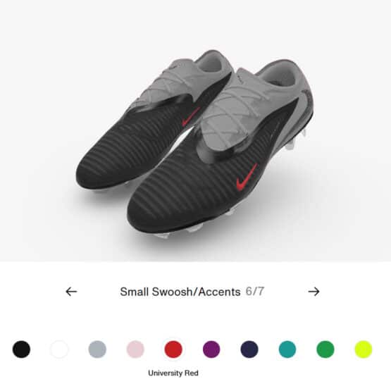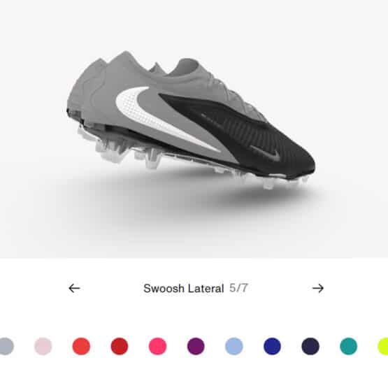 Nike By You Phantom 6 lets you create many colour combinations for your own special edition boots. You can pair base colours with more standout Swoosh and accent colours. You can tie in those with your choice of soleplate between firm ground or artificial grass (at the time of writing, soft ground anti-clog is not yet available for the NikeID Phantom). At the moment, only the low-cut Phantom 6 has this customisation service.