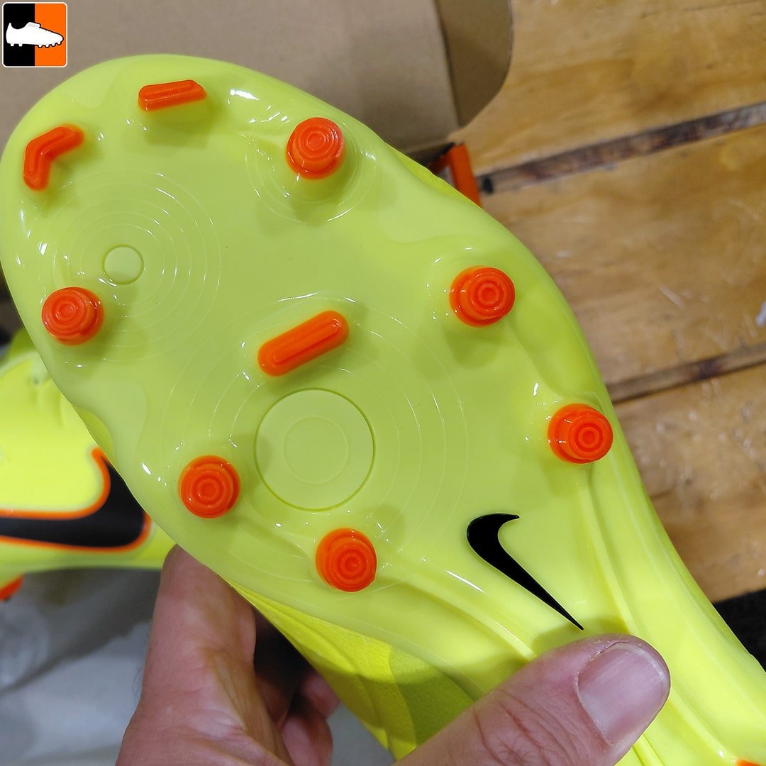 The Tiempo VII was also the generation that applied Flyknit around the midfoot. The Flyknit on this boot was housing Flywire cables that supported midfoot lockdown. The Hyperstability plate was first introduced to the Tiempo and contained a mixture of conicals, blades, and chevrons for multidirectional traction.