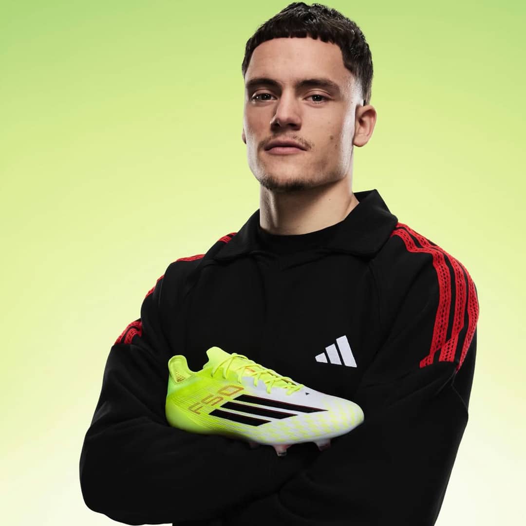 Quick on-feet and quick in-mind, Wirtz joined the other speedy players of adidas in representing the F50 at the beginning of 2026. By that time, the F50 was marked with a white-to-yellow transition in terms of colourway, with subtle touches of that same Solar Yellow on the checkered pattern around the toe box. The F50 branding appeared to be in a state of motion (much like the effect of the main colourway transition) by using a faint shade of red.